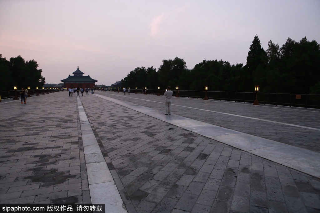 丹陛橋は、長さ360メートル、幅30メートル、祈谷壇南磚門と南天門(成貞門)を結ぶ通路であり、また、祈壇と圜丘壇を接続する軸線でもあります。丹陛橋は、中に神道、東に御道、西に王道という三つの石敷道があり、また北側高さ4メートル、南側高さ1メートルなので、北向きに歩むと、天まで昇っていくよう感じがさせられます。