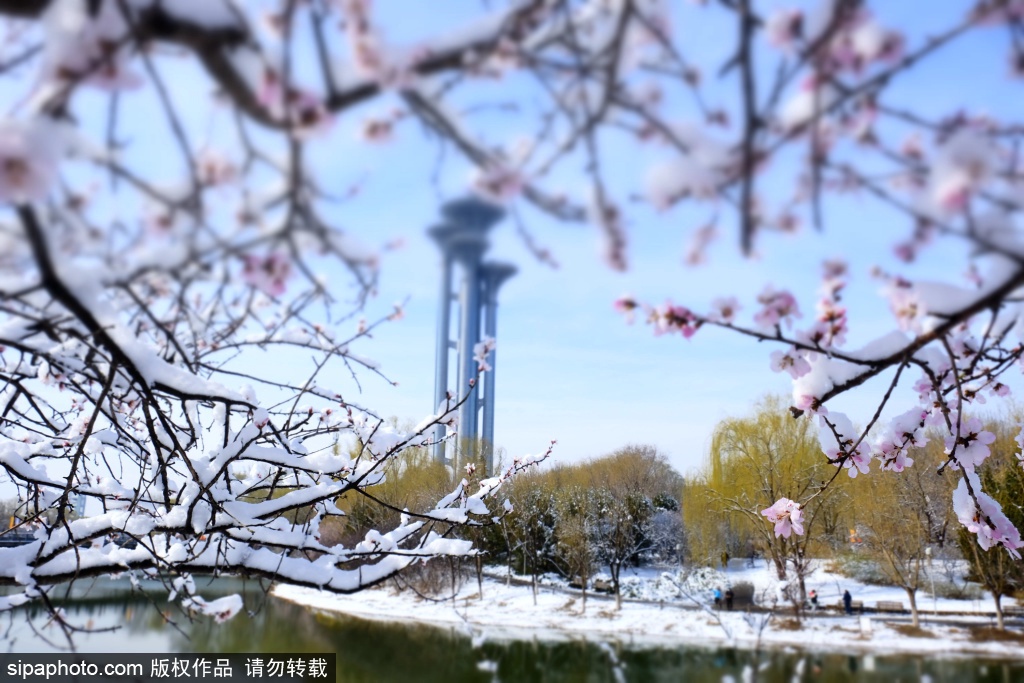 中国北京市でこのほど、春の雪が観測されました。春のお花見名所であるオリンピック森林公園では、咲き誇っている花に雪が舞い落ちる美しい景色が見られました。