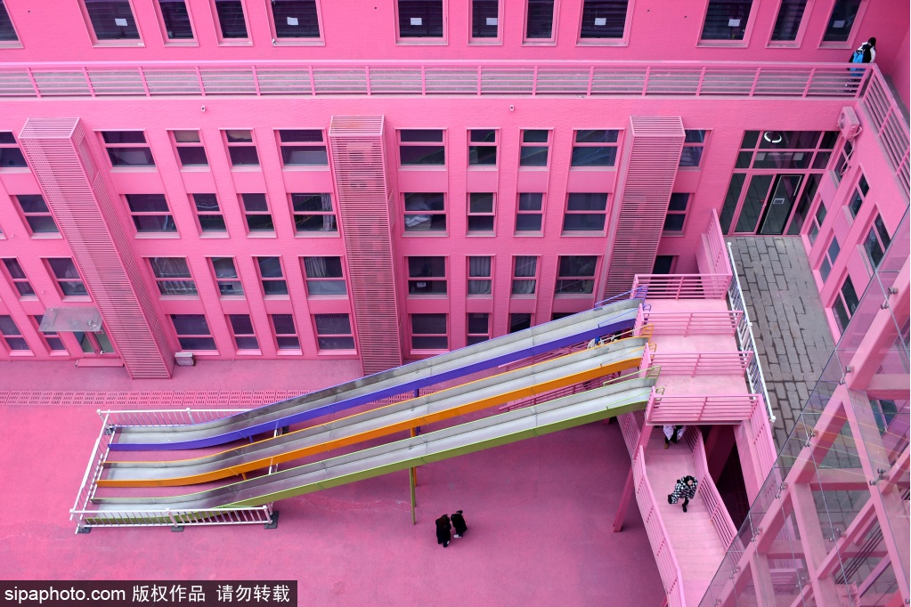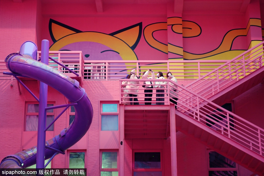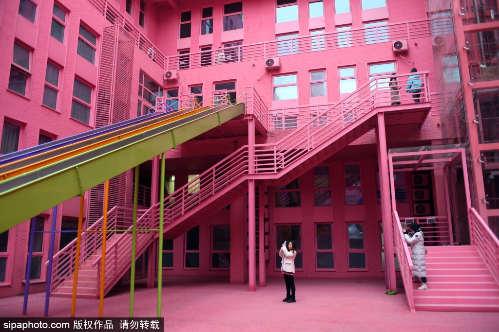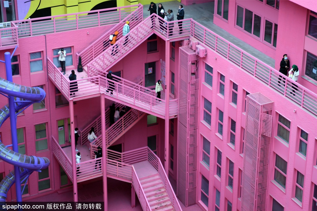 このビルは平屋路にあります。玄関を入ると、まるでピンクの渦に落ち、少女の天国に来たように感じられます。ビルの2階の高さに相当する長い滑り台は側面が紫、オレンジ、緑の3色に塗られ、4階建ての高さがある螺旋状滑り台も設置されます。
