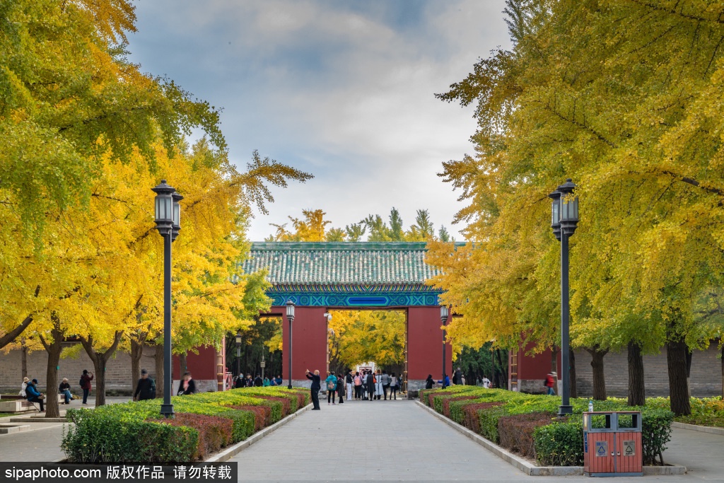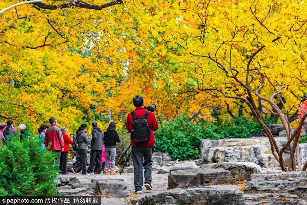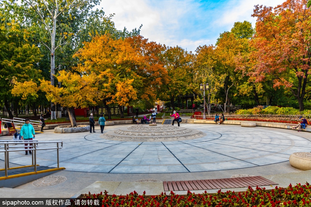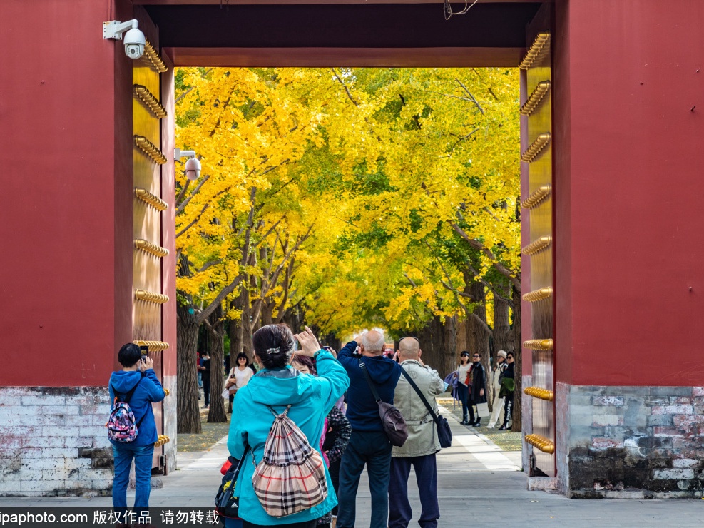 秋深まり、地壇公園の紅葉やイチョウも次第に色とりどりに染まり、見ごろを迎えています。風が吹くと黄金色のイチョウの葉がハラハラと舞い落ちる様子はまるで童話の世界のようです。「赤い壁と紅葉」で飾られた地壇公園は、北京の秋の美しさを良く表しています。