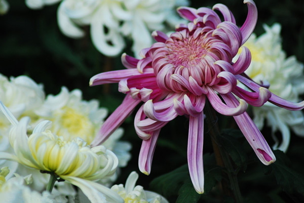 キクはランや梅、竹と並んで、その独特の花と姿、色、風格で「4大君子」に数えられている。キクは姿、色ともに華麗で、北京での栽培の歴史は長い。元代から栽培されるようになり、その水準は高く、北京市の花に指定された。