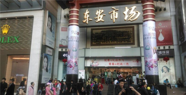 王府井百貨東安市場は清朝の光緖年間に創立され、東城区王府井にある。もともと東安市場は東安門と隣接しているため東安市場と名付けられたとのこと。曾てここは最も賑やかな商業エリアであった。市場に日用品を経営する店舗が並んでいて、屋台、お店もたくさんあって、古い北京の市場文化の特色が現れている。