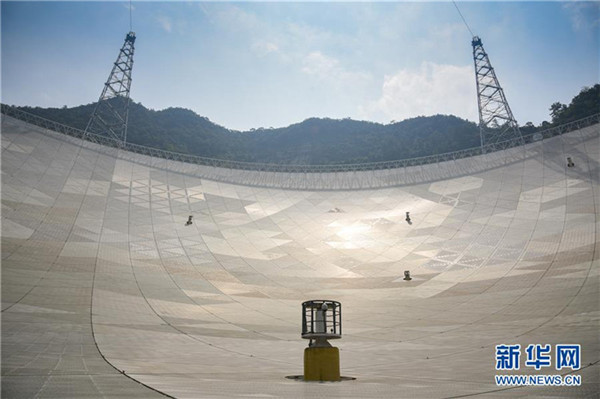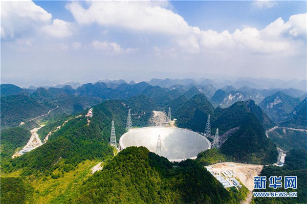 貴州省黔南プイ族ミャオ族自治州平塘県の窪地にある、直径500メートルの球面電波望遠鏡(FAST)が竣工し、深宇宙の秘密の探索を開始することが25日に発表された。新華社が伝えた。