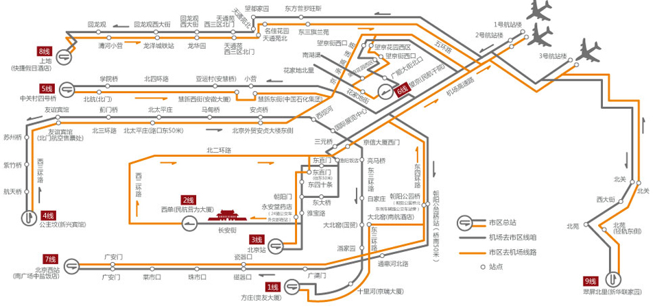 空港から速やかに北京市内に向かうために、北京空港の空港路線図を提供します。