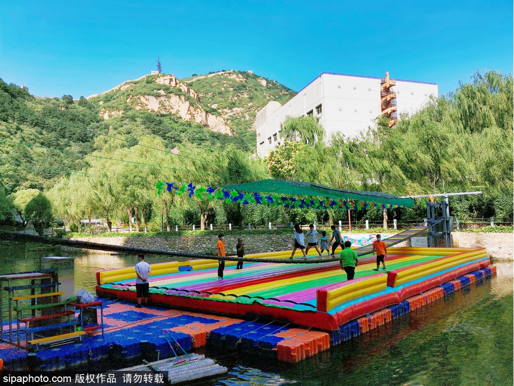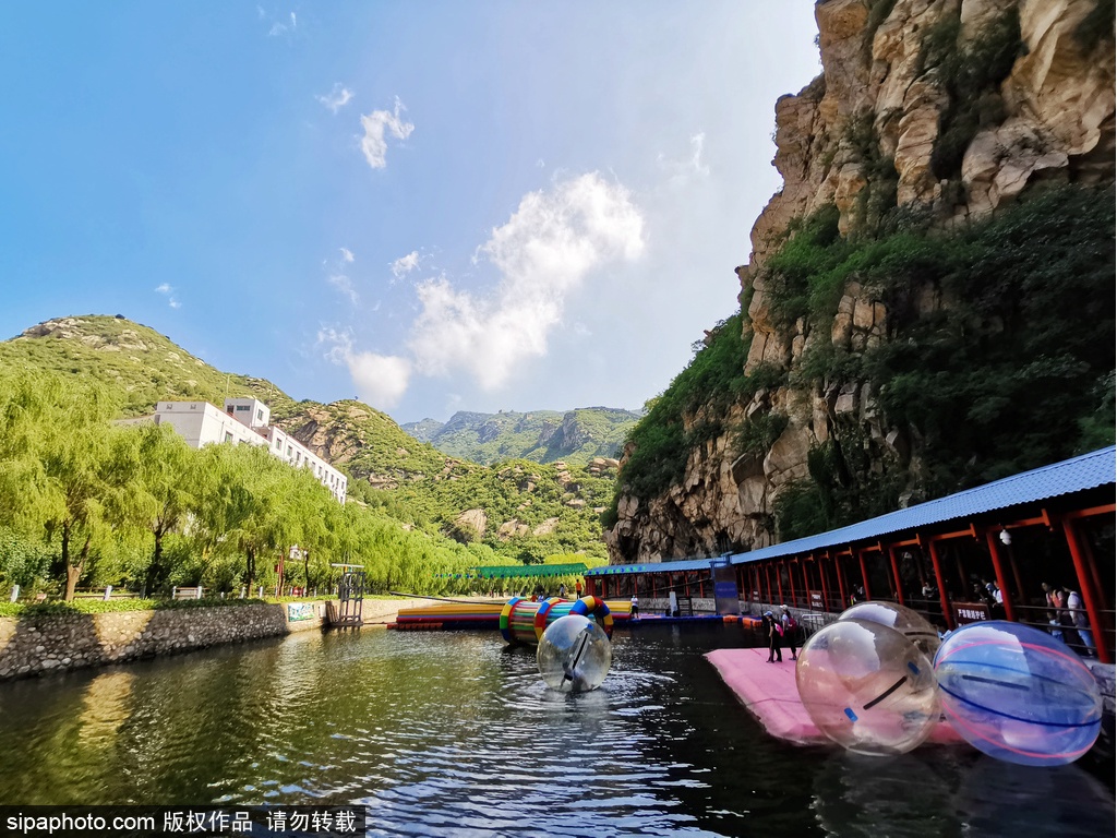 貯水ダムはリゾートの中心部に位置し、リゾートを南、北、西、東の4つの部分に分けています。南部は深さが1メートルであり、筏と手漕ぎボートが配置されています。北部は深さが40〜50メートルであり、ドラゴンボート、屋形船、スピードボートなどの大型ボートが配置され、夏にも浴場を開設されます。西部に青龍峡索道が設置されています。その長さは800メートルであり、落差は369メートルになります。索道を利用して景勝地の最高峰である玉皇台まで行けます。玉皇台に立つと、何千キロメートルを離れた密雲水庫、北京北部の広い畑、歴史変遷を述べる懐柔古城及び曲がりくねった万里の長城をすべて目に入ります。