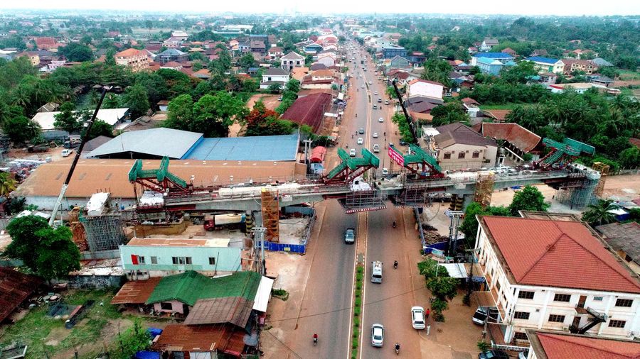 5月29日、建設が進む中国とラオスを結ぶ高速鉄道「中国ラオス鉄道」の鉄道橋の支間中央部。(ビエンチャン=新華社配信)