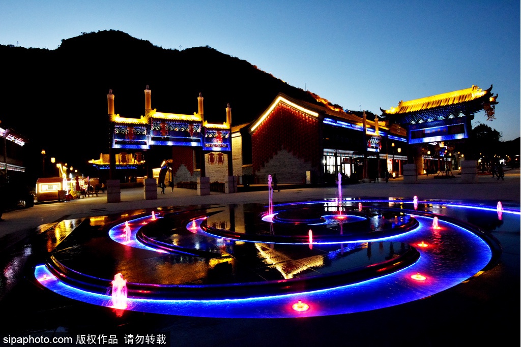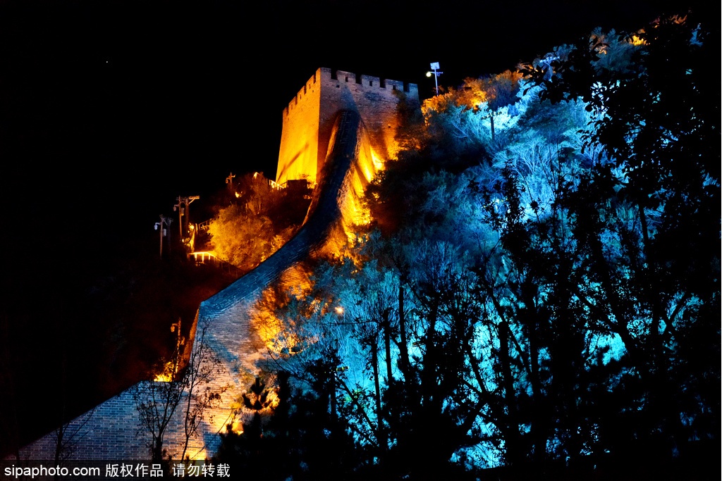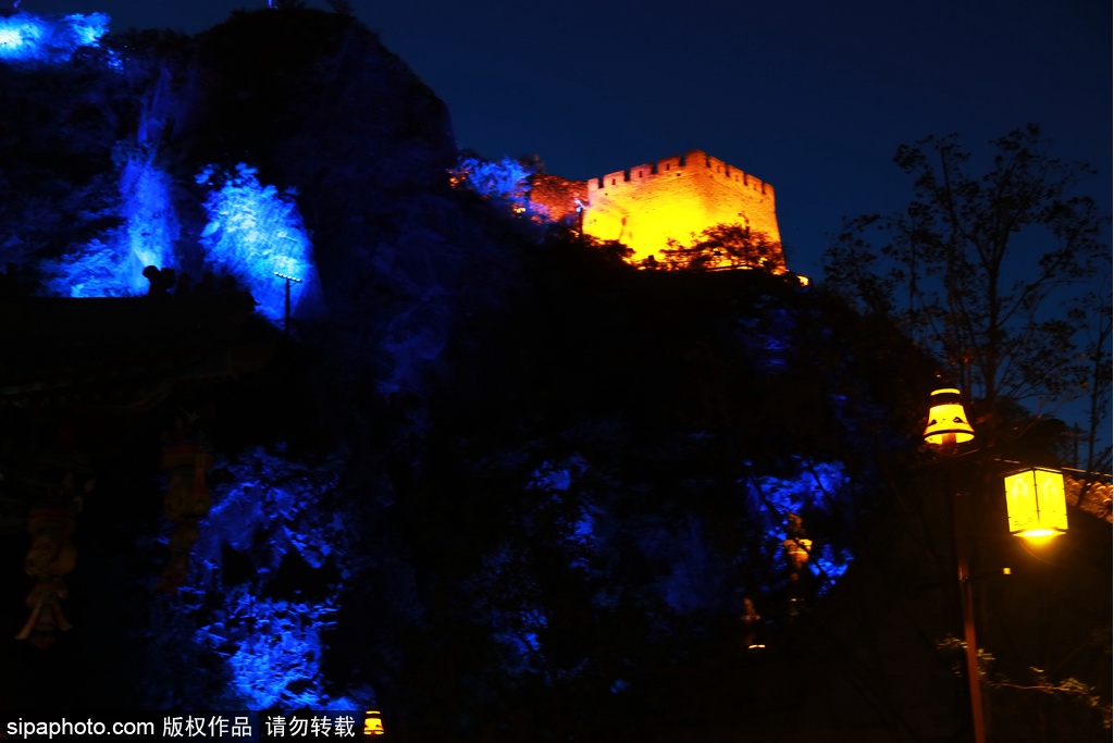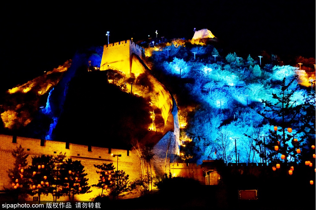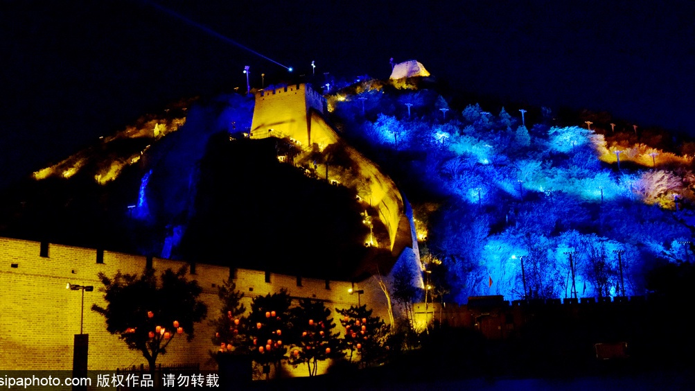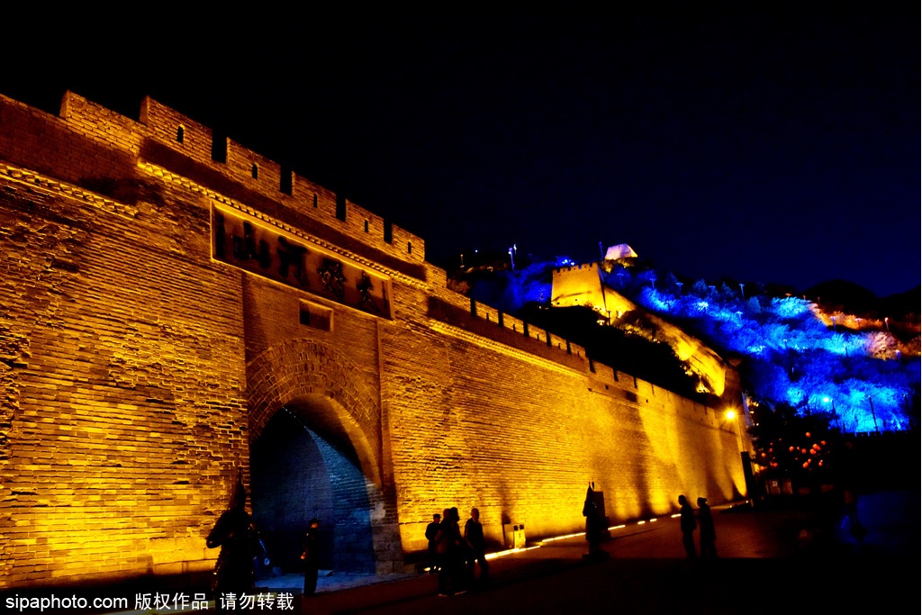 2020年9月20日夜、河北省張家口市橋西区にある大境門長城景勝地では、あかりがまばゆいばかりに輝いていて、長城の内外が目も奪わんばかりに華麗であった。曲がりくねった万里の長城や古式ゆかしい建物があかりに映り、とても壮観であった。