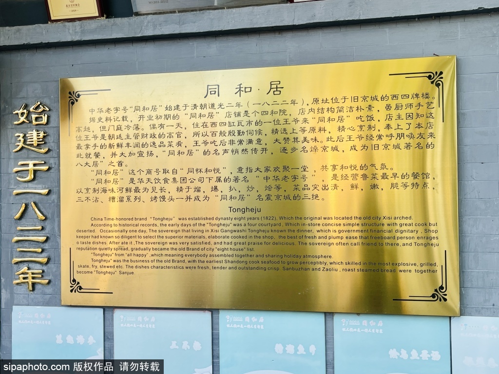 同和居飯荘は、北京で最も早くから山東料理を出している中華老舗であり、清の道光二年(西暦1822年)に開業し、山東料理の福山料理を特徴にしています。