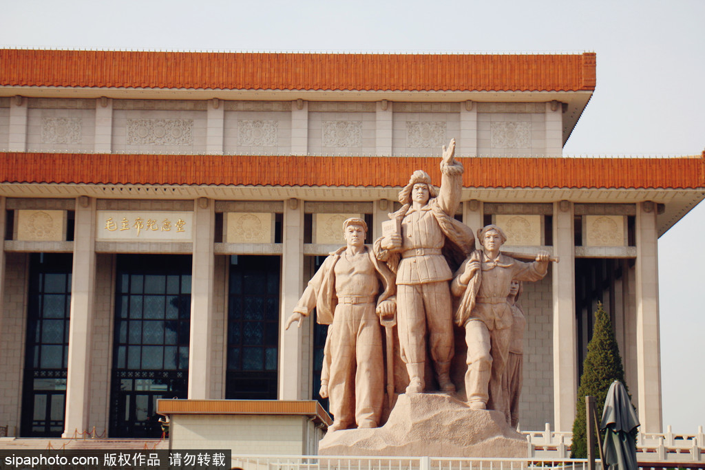 毛主席記念堂は、天安門広場にある人民英雄記念碑の南側に位置し、敷地面積が5.72ヘクタールで、総建築面積が33867平方メートルです。1976年11月に建設され、1977年9月9日に落成式が行われ、一般公開されました。毛主席記念堂は建国の指導者である毛沢東を記念するために、建てられたものです。本館は列柱のある正六面体の建物であり、南北の正面に漢白玉の扁額が嵌められ、「毛主席記念堂」という六つの金文字が刻まれました。荘厳で独特の民族風格を持っています。