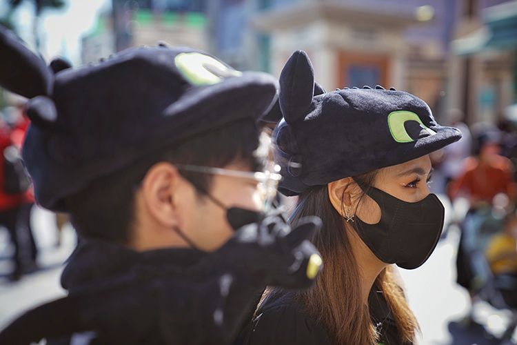 ハリウッドのテーマパークに入って、ハリウッド・ウォーク・オブ・フェームを歩くと、道路の両側に周年を祝う旗が見え、パークのあちこちのLEDスクリーンに1周年を祝うメッセージが表示されている。