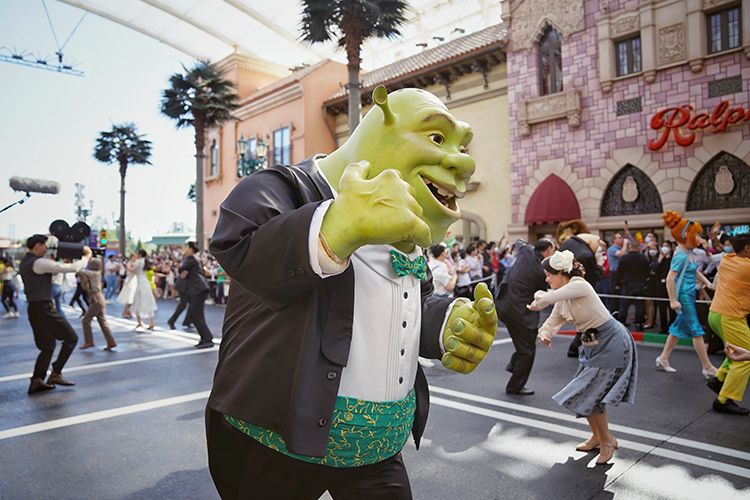 9月20日、北京のユニバーサルリゾートがオープン1周年を迎えた。14の人気キャラクターが集まり、演出効果を盛り上げる。