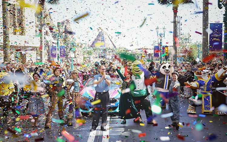 北京ユニバーサルリゾート執行副総裁兼社長の康兆寧(joe hoskin)氏は、来場者代表とともに、観光客とチームメンバーをこの特別なパーティーに招待した。感動的なカウントダウンの中で1周年を迎え、リボンたちが会場を最高潮に盛り上げた。