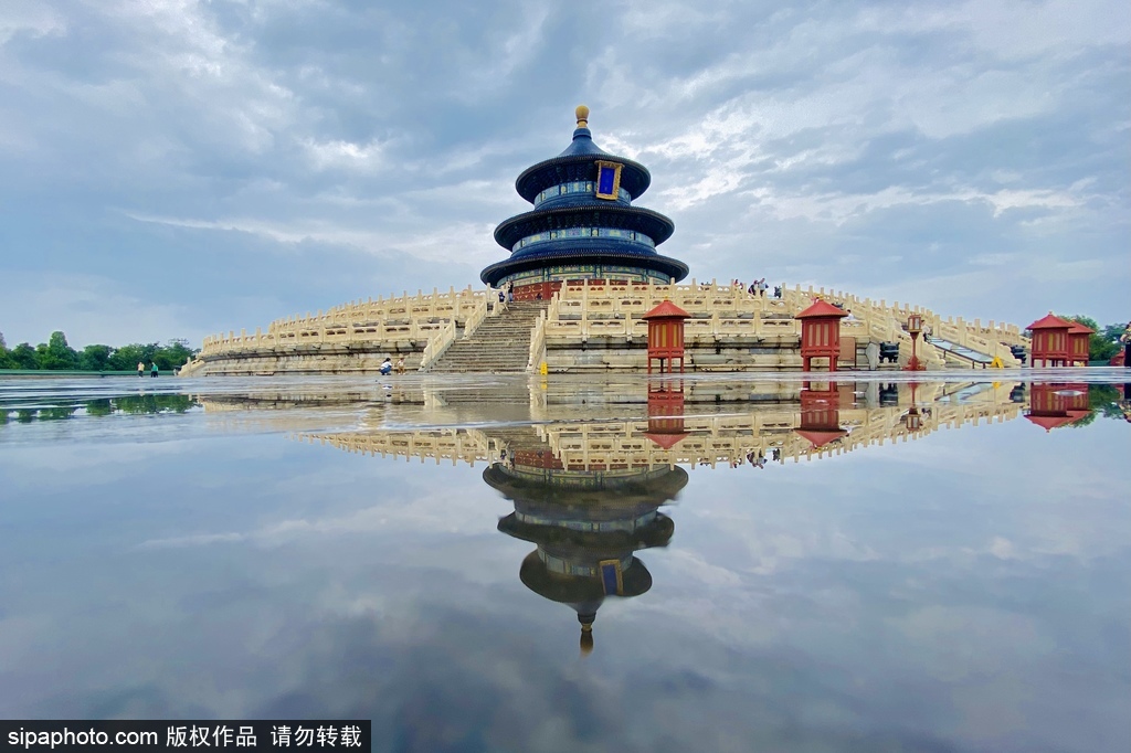 見どころ:天壇の内側の祭壇は、壁で南北に分けられています。北側には春の豊年を祈願する「祈谷壇」、中央の建物には「祈年殿」があります。南側には冬至に天を祭る「圜丘壇」があり、中央の建物は「圜丘」と呼ばれる巨大な円形の石造りの台です。この2つの祭壇は、地上より高い位置にある全長360mの甬道「丹陛橋」で結ばれており、合わせて南北1200mの天壇の軸を形成し、その両脇には広大な面積の柏の林が広がっているのです。西天門の南側には、祭祀をする前の皇帝の食事の場所であった「斎宮」があります。西側では、外壇に「神楽署」が設けられ、祭祀音楽・舞踊の指導と演奏を担当しました。祭壇内の主な建物は、祈年殿、皇乾殿、圜丘、斎宮、無梁殿、長廊、双環万寿亭などのほか、回音壁、三音石、七星石などの有名なモニュメントがあります。天壇は明・永楽18年(1420年)に建てられ、明・嘉靖、清・乾隆の各時代に増改築が行われました。新中国が成立して以来、国家は天壇の文物や遺跡の保存と維持に多大な投資を行ってきました。その深い文化的含意と壮大な建築様式により、天壇は東洋の古代文明の肖像となっています。1961年、国務院は天壇を国家重点文物保護単位とし、1998年にはユネスコの世界遺産に認定された。"1998年、ユネスコの世界遺産に認定されました。