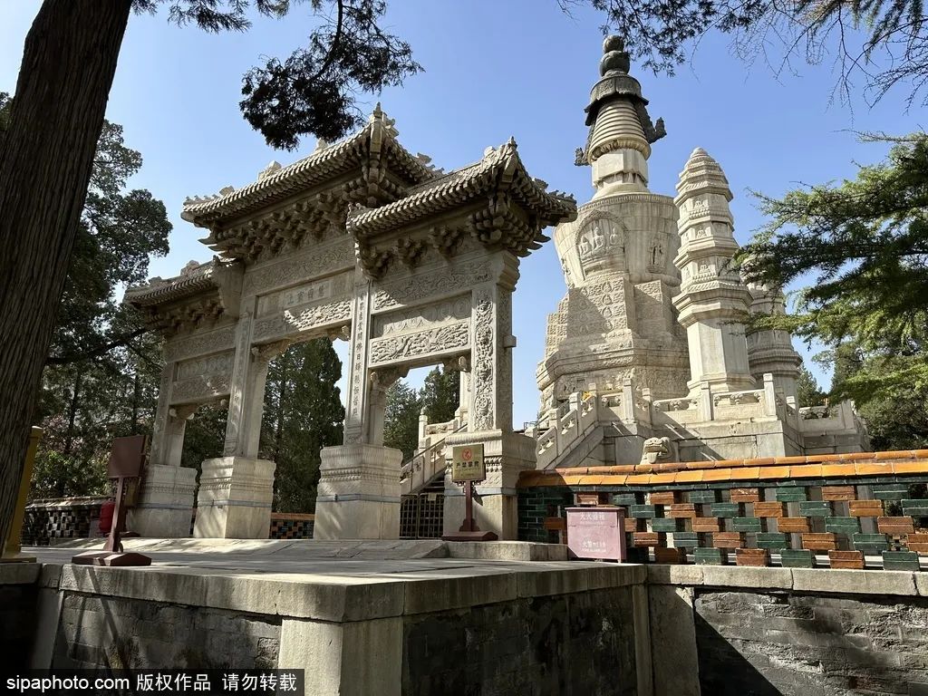 清浄化城塔を中心に、西黄寺の他の場所も心を清める良い場所です。寺院にはハク、槐、紫竹が植えられており、風が吹くと竹の葉がささやき、静かで美しい景色が広がります。木の下には石のテーブルと椅子があり、少し休憩することができます。