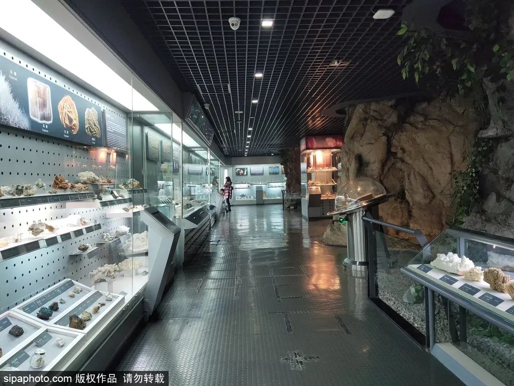 中国地質博物館では、世界最大の「水晶王」、巨大蛍石方解石晶房標本、精巧で美しい青銅鉱、辰砂、雄黄、雌黄、灰タングステン鉱、輝安鉱などの中国の特色ある鉱物標本、および種類の多い宝石、玉などの国宝級の貴重品を鑑賞することができる。