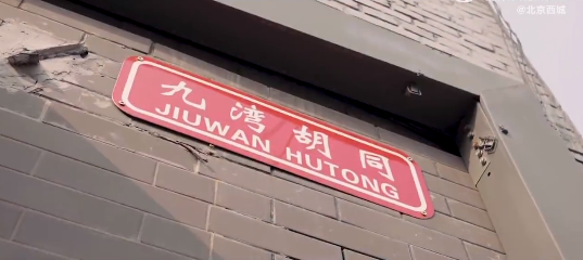 九湾胡同は西城区東部に位置し、東口は舗陳市胡同とつながり、西口は校尉営胡同から通り、全長は約390メートル。