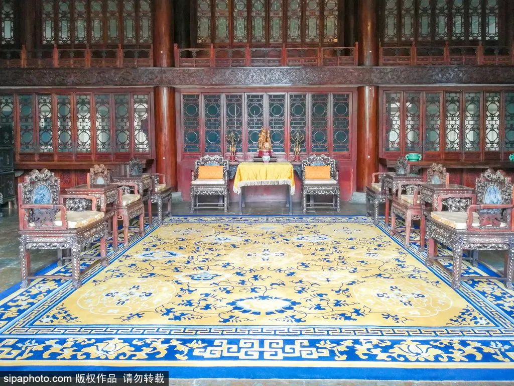 前宅府邸の配置は清王朝の王府の規制に従い、厳格な中軸線対称の形を成し、中路、東路、西路の3つの道路に分かれています。多進四合院の庭園が縦に配置され、規格が整然としており、外観的な規模が大きくて堂々としていて立派です。中路にある銀安殿、嘉楽堂、後罩楼は、所有者の身分地位を最もよく反映し、規制を最もよく表現する建築のグループです。