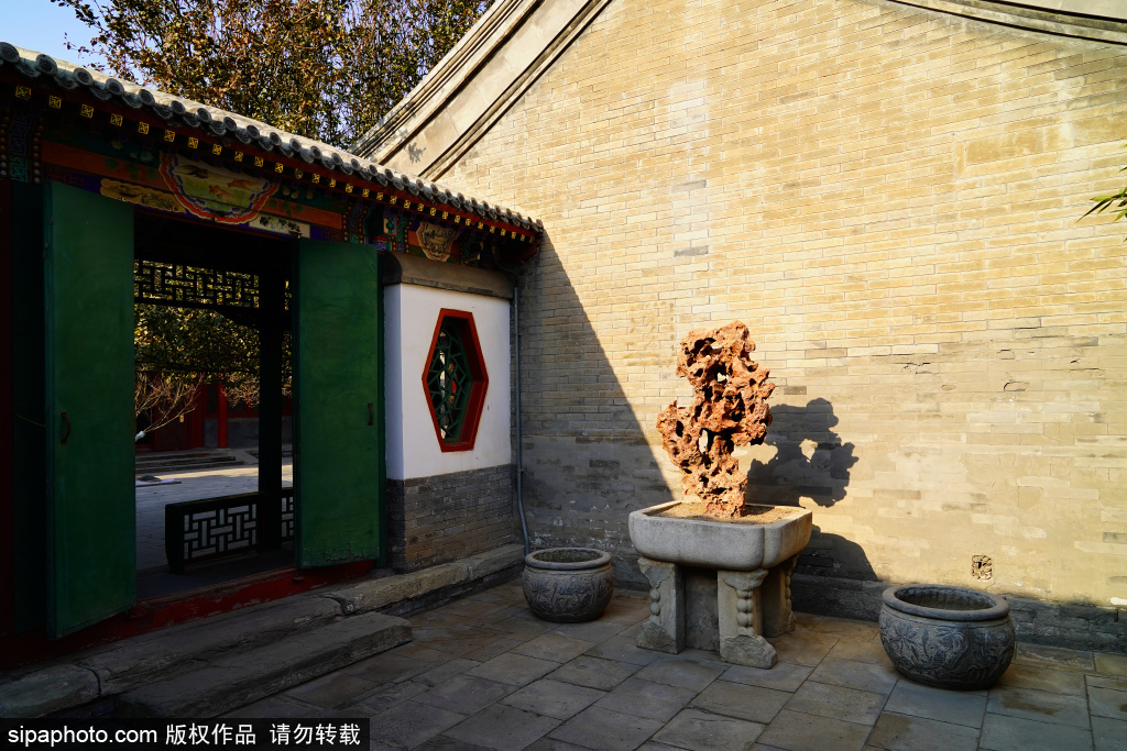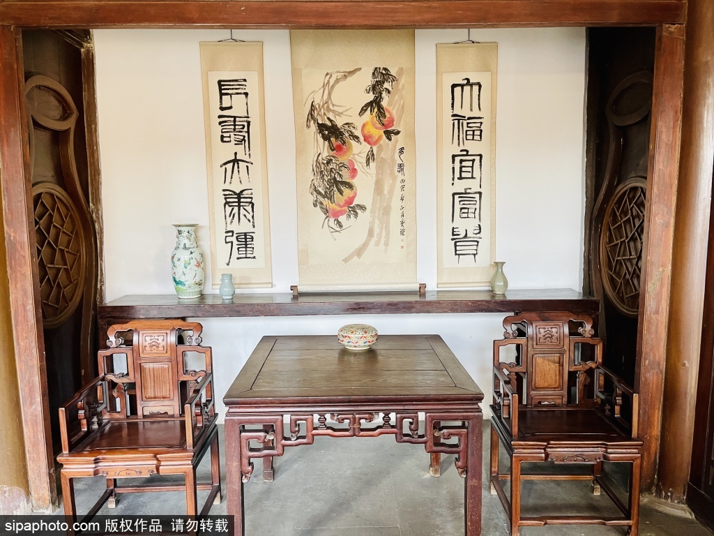 このほかに、レンガには精巧で美しい彫刻が隠れて、屋内には名家の書道作品が飾られて、斉白石先生が自分で書いた篆書連語もあり、非常に目立っている。