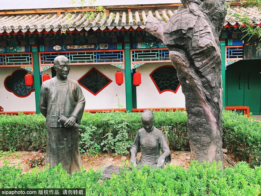 記念館の中央に銅鋳工芸で作られた斉白石の銅像がそびえたって、銅像の鷹さは1.95メートルで、有名な彫刻家呉為山が特別に創作した彫刻であり、旧居に強烈な歴史雰囲気を増加した。