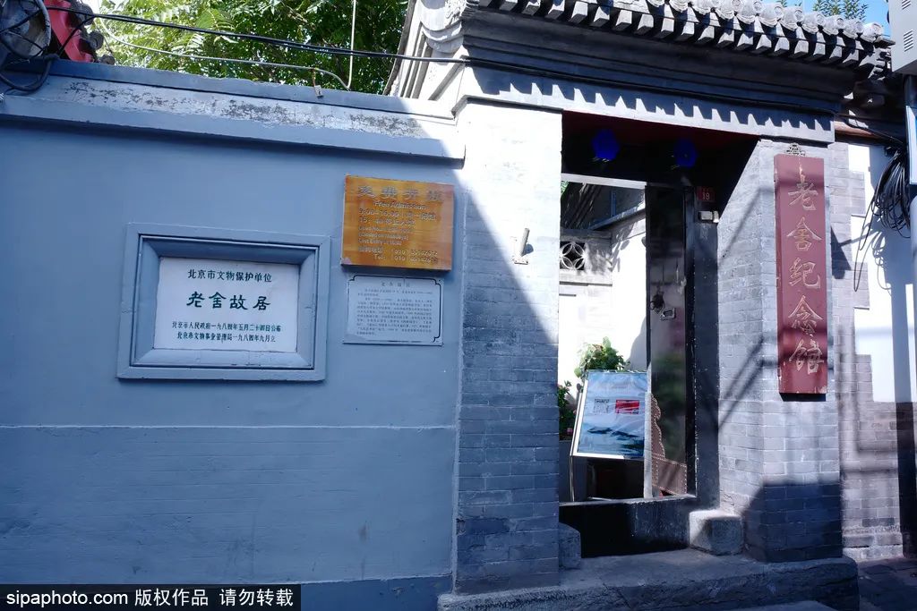 老舎の旧居は典型的な北京四合院で、不調和な山が途切れ、純木造で、中庭全体がコンパクトに配置されている。正門は西に座って東に向かい、灰瓦門楼、門の扇は黒塗りの油飾りである。 老舎さんは1950年にこの住宅を購入し、16年間ここで生活し、『龍須溝』、『茶館』、『方真珠』、『正紅傘下』など24作品を書いた。