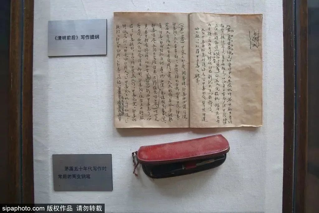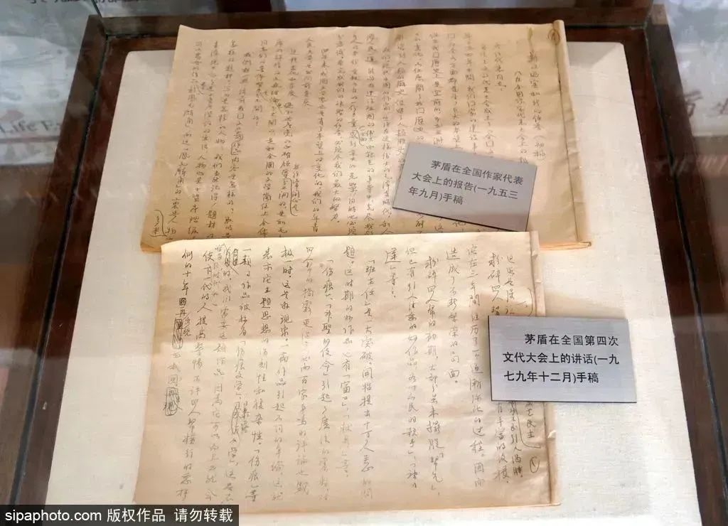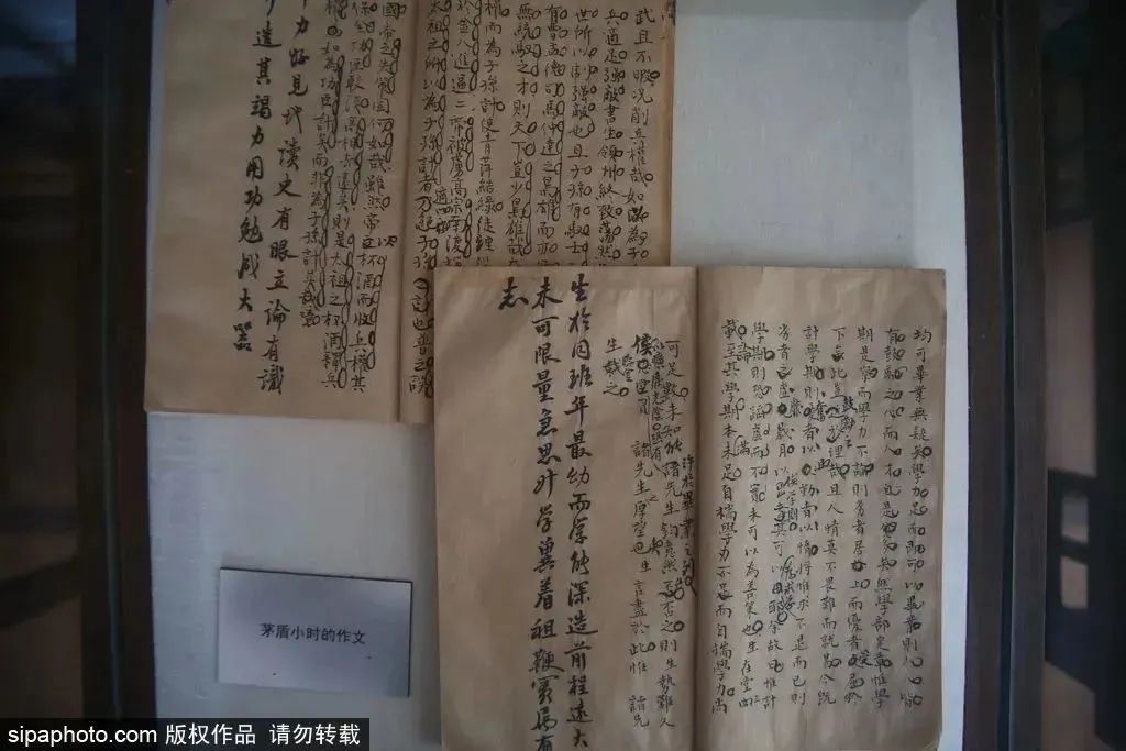 第一展示室で、茅盾先生の学生時代、五四時期、北伐時期と「左連」前後の勉強、生活と成長経歴に関連する写真と実物が陳列されている。上述の核歴史時期の著作バージョンと原稿も展示されている。