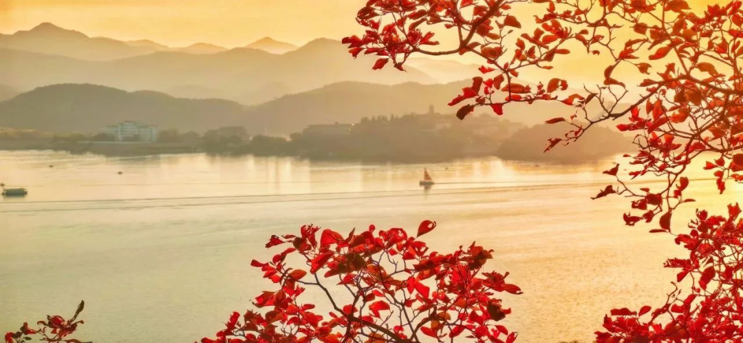 毎年10月中旬から11月中旬にかけて、観光客は平谷の奇峰秀水だけでなく、山の紅葉を満喫することができる。秋に入った後の金海湖紅葉の見頃になり、層林が染まり、2万ムーの紅葉が独特な生態景観を形成している。高いところに登って、湖面を見下ろすと金色の光が飛び跳ねていて、万山は赤く、緑は赤を支えて、赤は黄を支えて、互いに映えて、互いに寄り添って、1枚の美しい秋の絵巻を構成している。