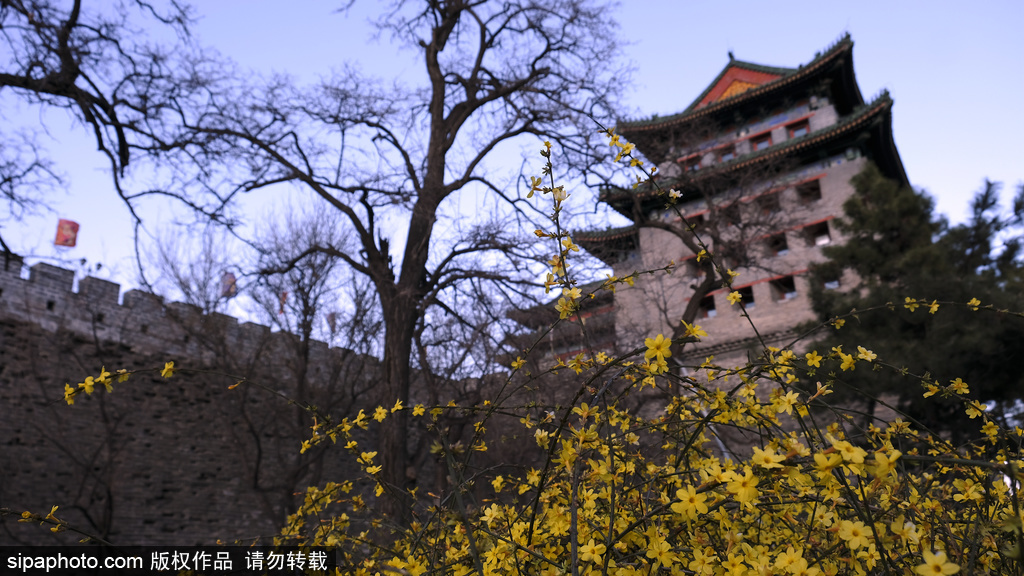 明城壁遺跡公園は東は北京駅の東街の位置から始まり、西は崇文門に至る。明城壁遺跡公園の迎春花は必ずしも他の場所よりも多く、より良く咲いているわけではなく、重要なのは、古い城壁の灰色の城れんがを引き立てて、オウバイがより精緻に見えることだ。