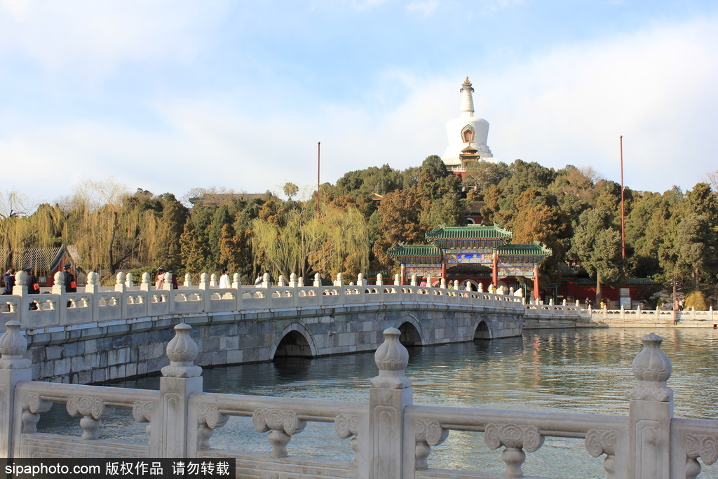 北海公園瓊華島の「瓊島春陰」は燕京八景の一つだ。島の高い漢白玉石碑には、「瓊島春陰」の4つの大きな字が清代乾隆帝の御筆親書である。
