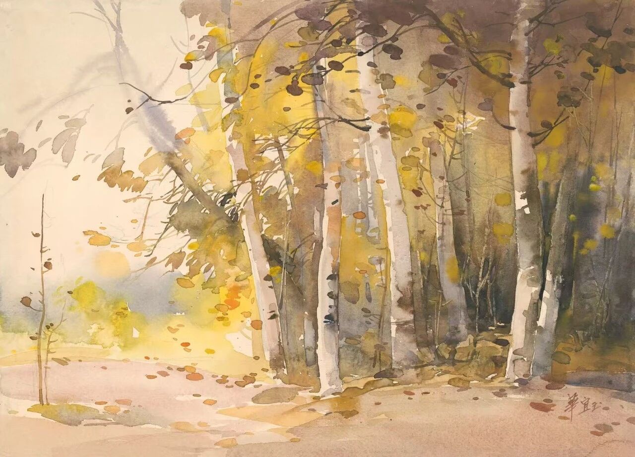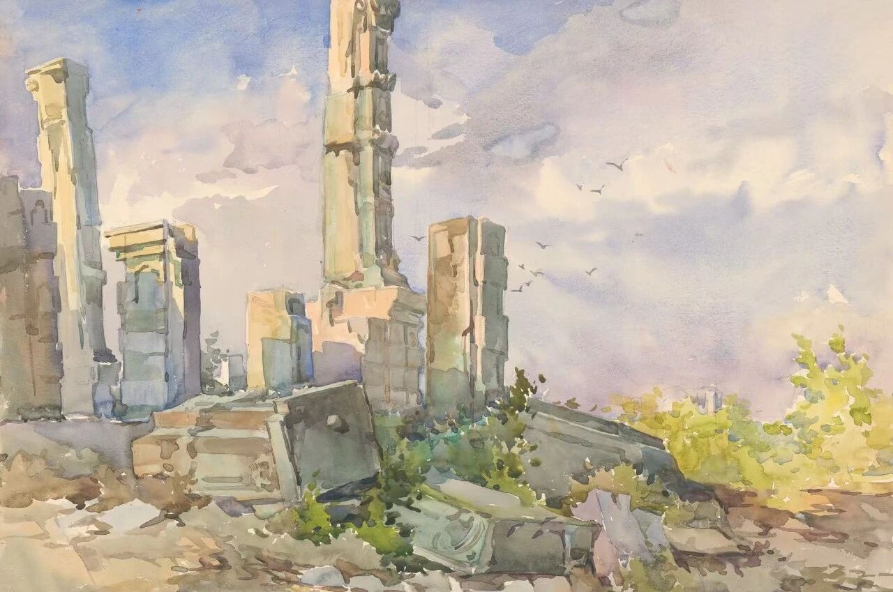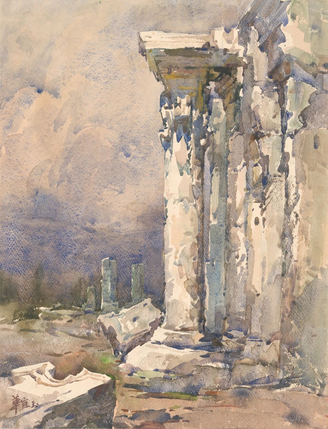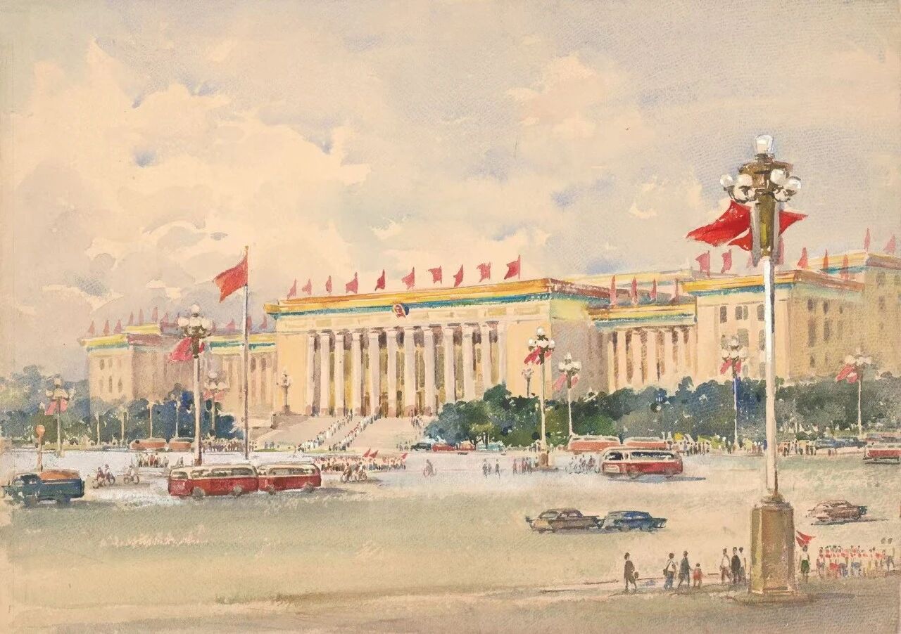 北平国立芸専油画科を卒業する頃には、西洋絵画の色彩論理と中国伝統書画の筆墨功力を兼ね備えていました。1952年、30歳で清華大学建築学科に赴任し、そこから半世紀にわたり教鞭を執りました。授業では「観察は深く、表現は簡潔に」と強調する厳格な教師でありながら、授業後には画板を背負って北京の街を写生して歩き、青春から老境に至るまで筆をもって北京の時の移ろいを記録しました。2005年に逝去する直前まで『建築水彩画技法』の原稿を修正し続けたその執念は、すでに一枚一枚の作品に刻まれています。