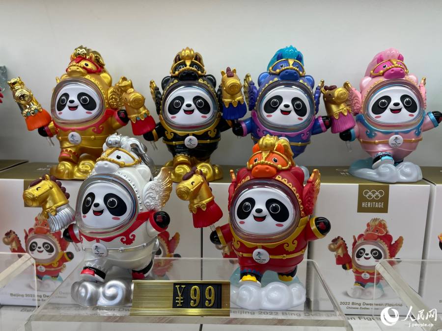 アイスキューブでカーリング体験を楽しんだ後は、屋外にある五輪グッズショップへ。2022年北京冬季五輪のマスコット「氷墩墩」(ビンドゥンドゥン)は、五輪が終わった後も毎年、その年の干支をデザインした「かぶりもの」バージョンが出ていることを知っているだろうか?これまで、兎、竜、蛇をデザインした干支ドゥンドゥンが発売されている。