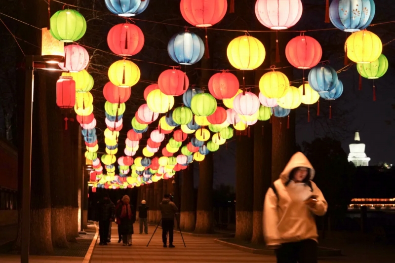 北京の街中や商業エリア、公園では、伝統文化を取り入れた「国風」スタイルのランタンが、近代的なライトアップと共に雰囲気を盛り上げている。またソーシャルメディアでは、前門大街や北京坊、琉璃廠といった人気観光スポットの夜景が話題を集めている。(編集KN)